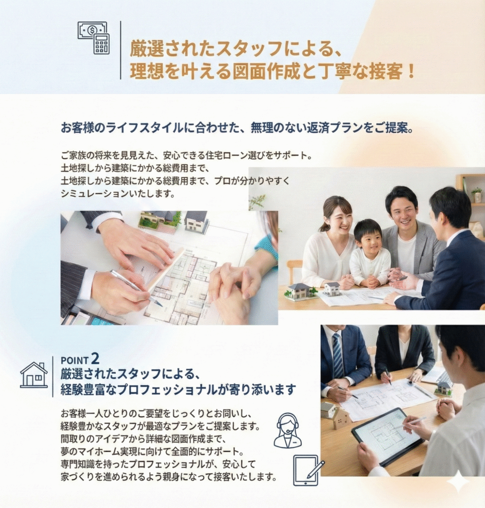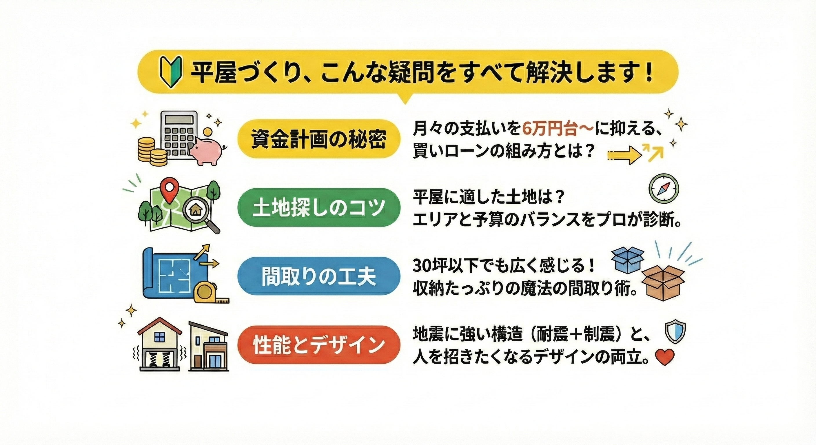 「聞いておいてよかった!」と必ず思っていただける自信があります。 まずは無料相談会で、理想の平屋プランやお家づくりの悩みと一緒に、この「お得な秘密」をスタッフに聞いてみてください。