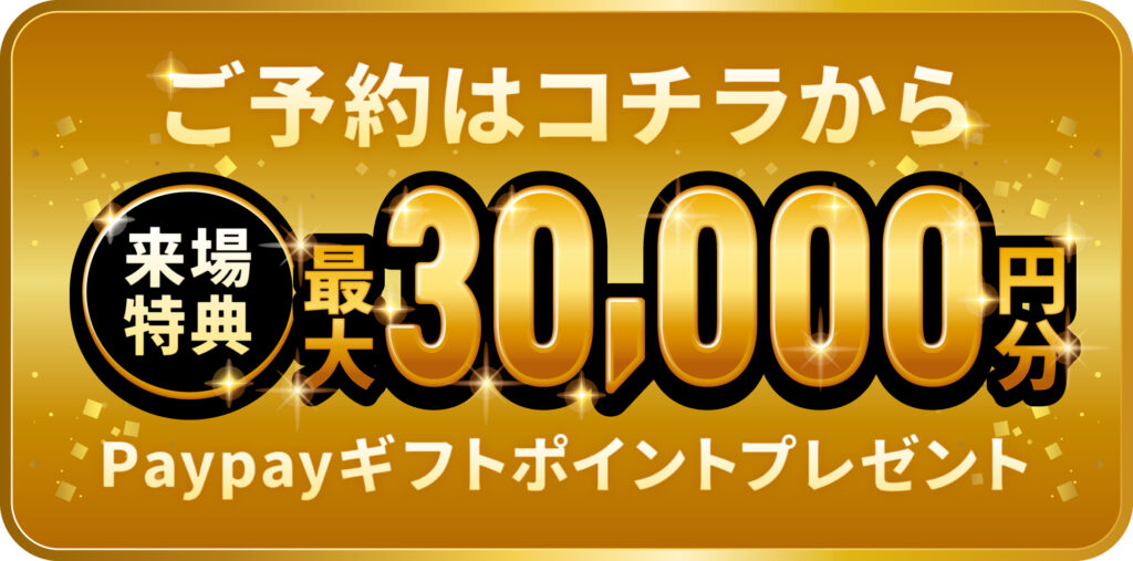 事前予約でご来場いただくと、さらに 30,000円分のPayPayポイント をプレゼント!